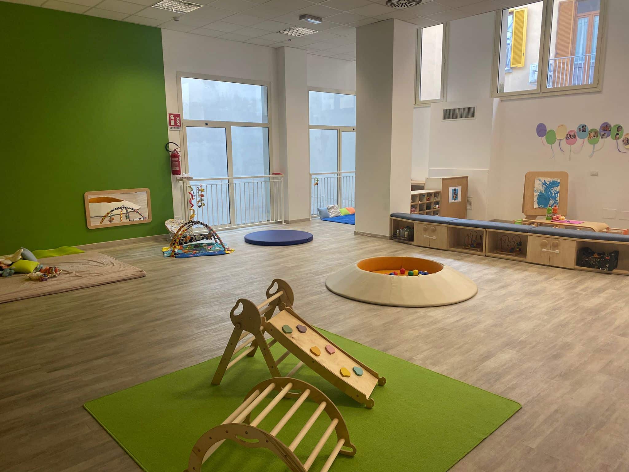 La struttura è caratterizzata da un ampio open space adibito al gioco libero e alle attività organizzate, strutturato per rispondere ai bisogni di accoglienza, serenità, movimento, sicurezza, e continuo stimolo alla curiosità e all’apprendimento.