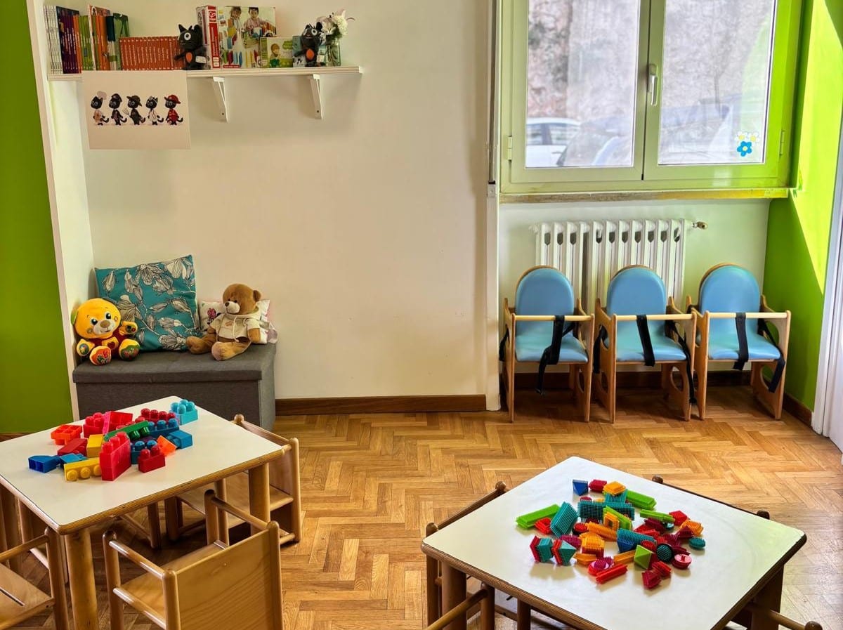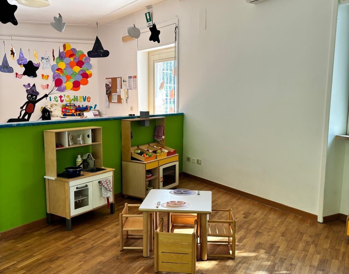 La struttura è composta di un’area esterna situata all’ingresso. Al suo interno dispone di un ampio salone per le attività didattiche, un’altra grande stanza polifunzionale, destinata principalmente al riposo, ma che potrà essere utilizzata anche per attività di tipo psicomotorio e due stanze adibite a servizi igienici per bambini. La cucina è interna e i pasti vengono preparati espressi con prodotti freschi di giornata.